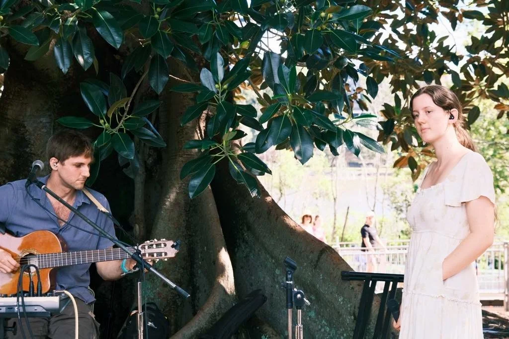 Brisbane based duo 'ehmba' combines acoustic nylon string guitar with male and female vocals, creating a warm and intimate sound. Drawing inspiration from artists like José González and Iron & Wine, ehmba's sound is characterised by intricate melodies, haunting vocal harmonies and nuanced guitar work. They perform twice monthly at the local West End markets and are experienced in bringing their music to weddings and special occasions.